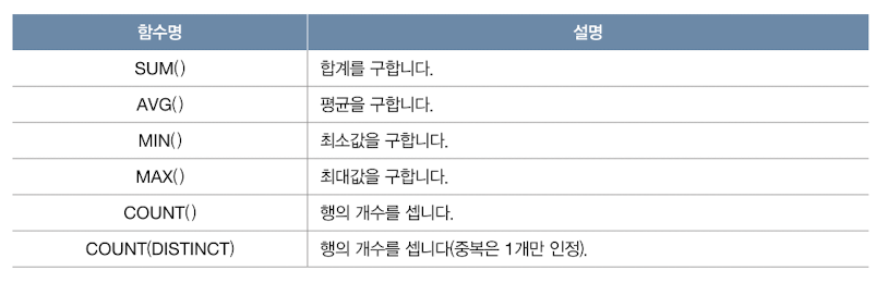 - 집계함수는 WHERE절에서 사용할 수 없다