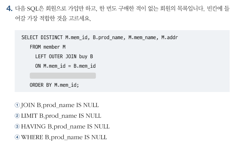 ORDER BY M.mem_id;- 두 테이블을 조인할 때 필요한 내용이 한쪽 테이블에만 있어도 결과를 추출할 수 있다