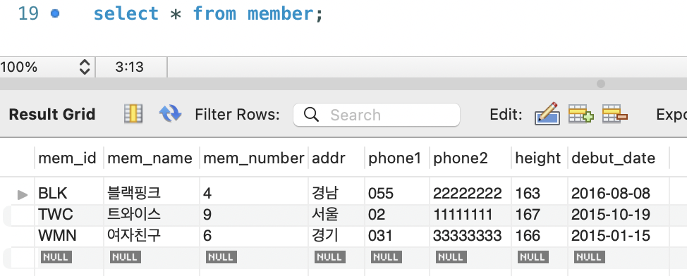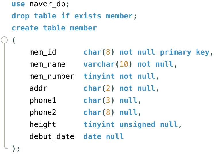 1. member 테이블 생성: 자동 대문자가 안되어서 그냥 소문자로 와르르 썼다... mysql 설정을 다시 해봐야할듯